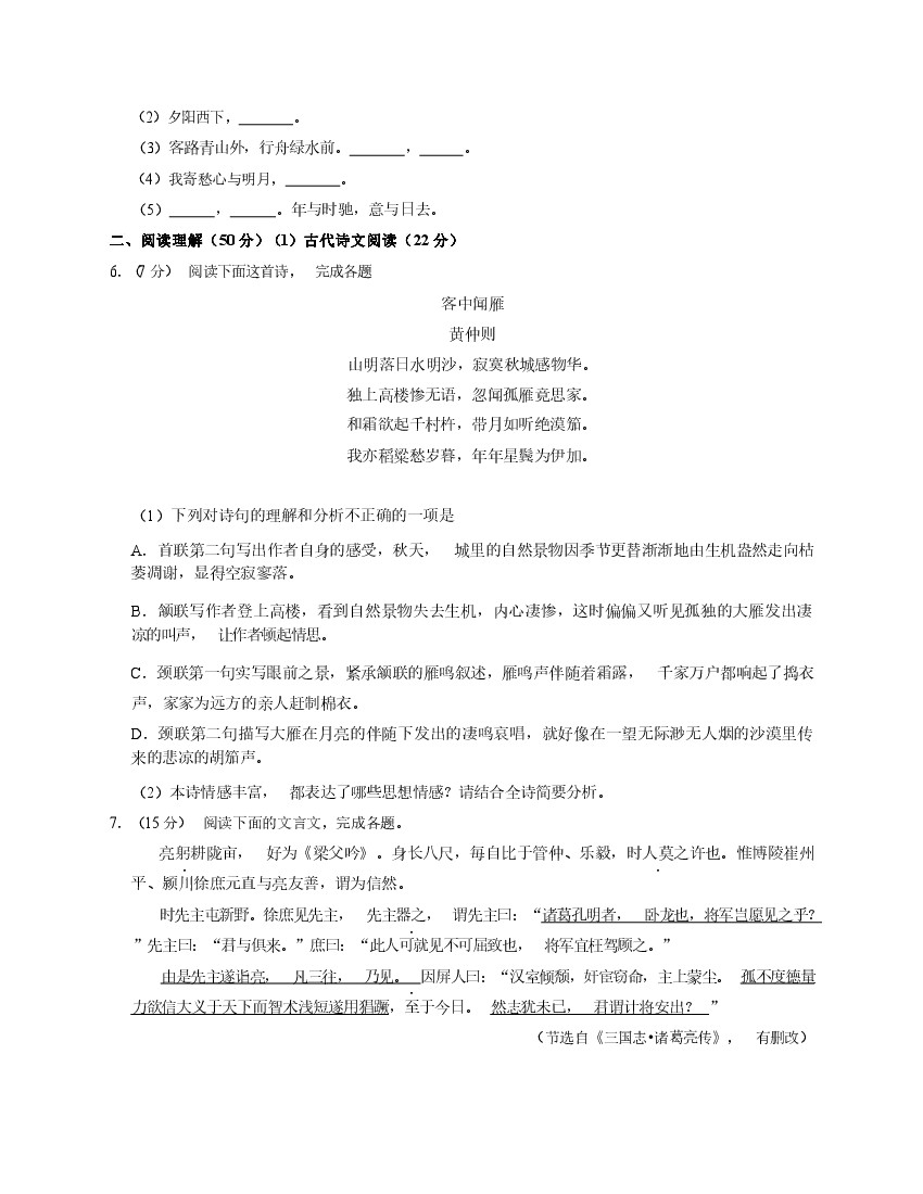 初中 七年级(上)语文期末试卷6-1卷人教部编版