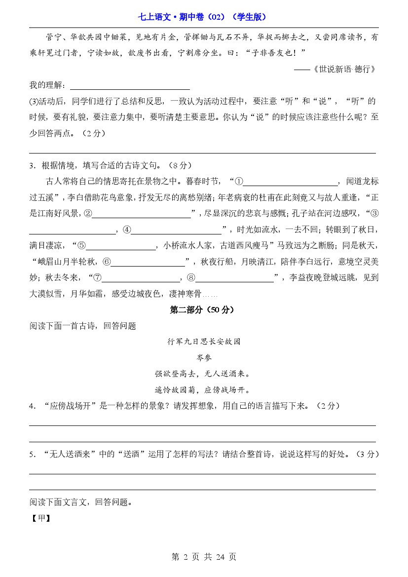首页 > 全部 > 期中试卷 > 7上语文期中卷02【第1-3单元】