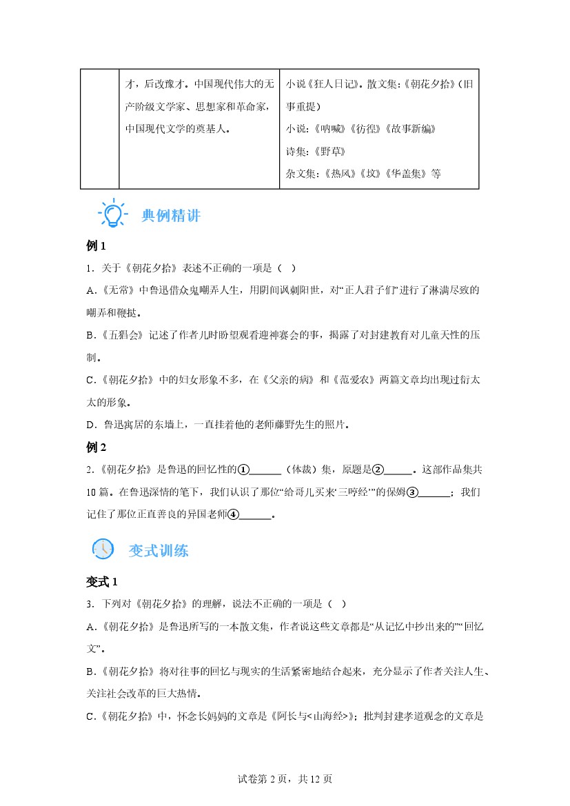 七年级上册期中重难点复习攻略——名著阅读重难点