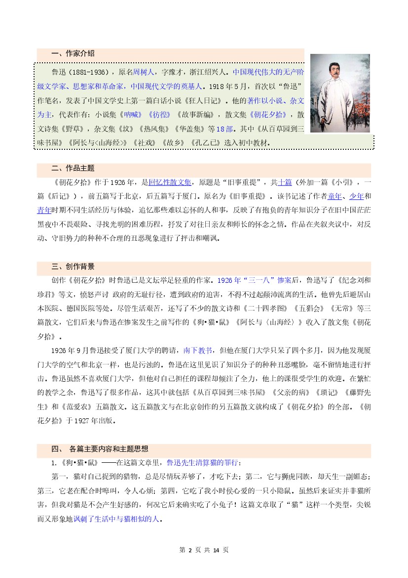 首页 > 全部 > 名著阅读 > 整本书阅读之《朝花夕拾》(原卷版)