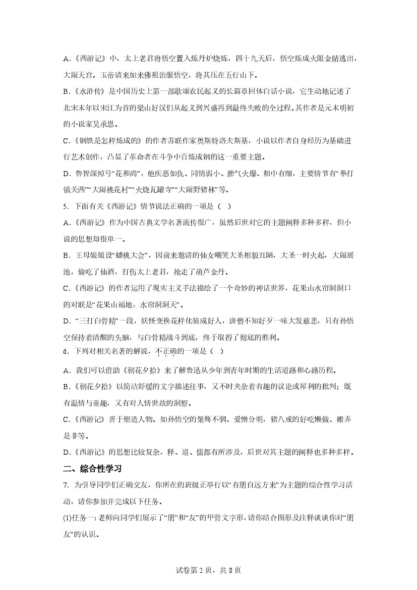 首页 > 全部 > 名著阅读 > 七年级上册期末重难点复习攻略——名著阅读重难点 专项训练
