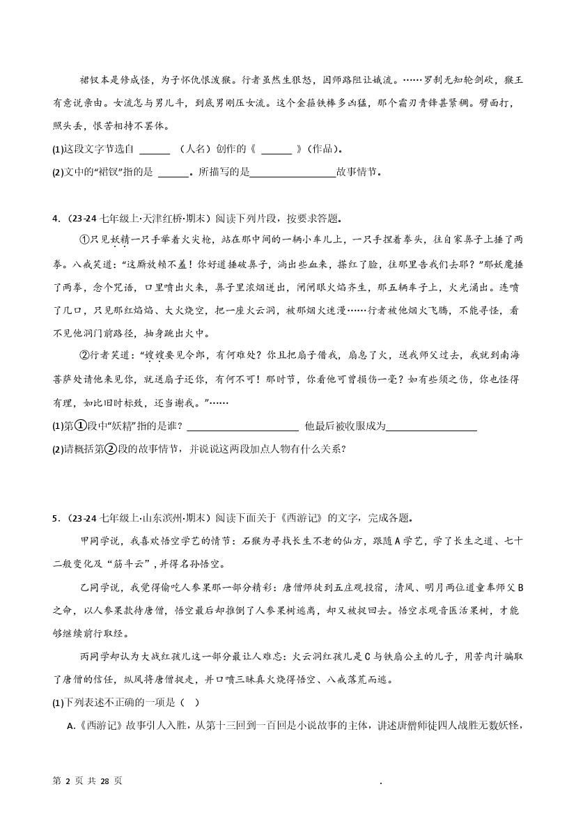 初中 七年级(上)语文《西游记》整本书阅读期末热点