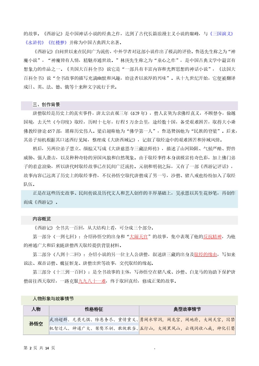 初中 七年级(上)语文整本书阅读《西游记》精品讲义