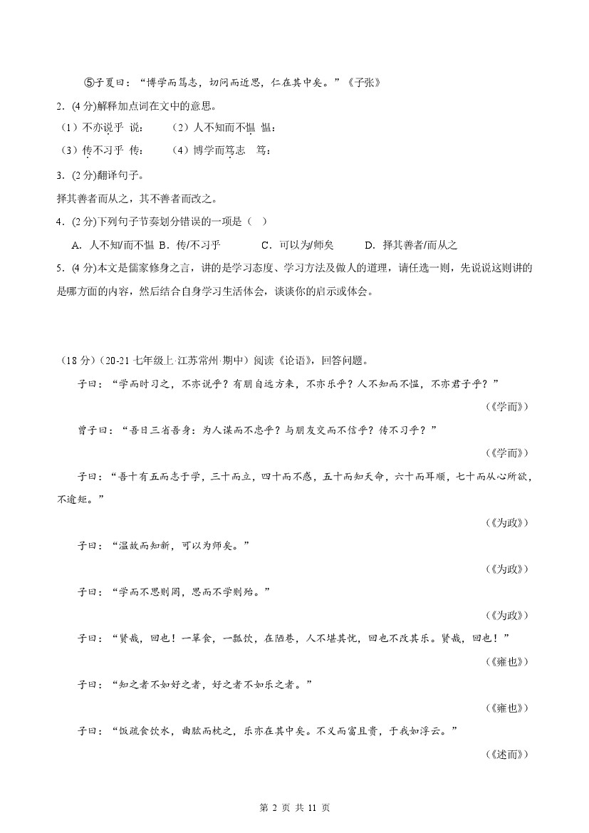 首页 > 全部 > 课时练习 > 25秋七年级上册语文同步练习第12课 《论语十二章》(分层作业)(原卷版)
