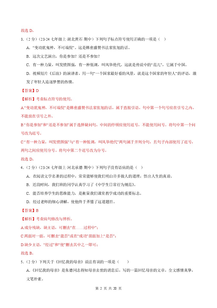 首页 > 全部 > 课时练习 > 25秋七年级上册语文同步练习第14课 《回忆我的母亲》(分层作业)(解析版)