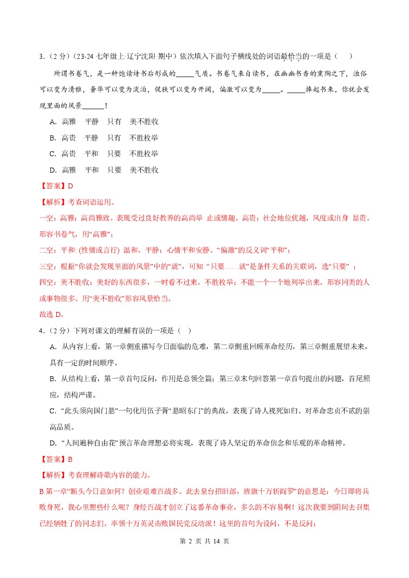 首页 > 全部 > 课时练习 > 25秋七年级上册语文同步练习第15课 《梅岭三章》(分层作业)(解析版)