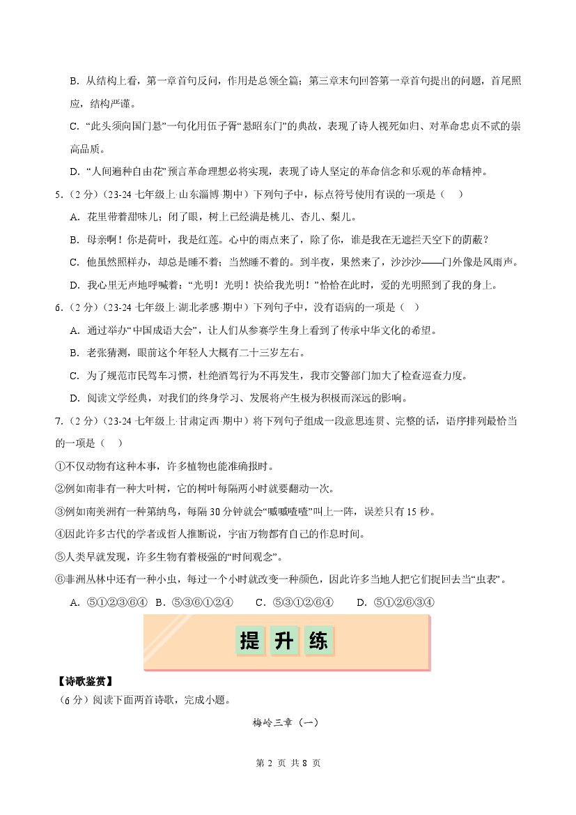 首页 > 全部 > 课时练习 > 25秋七年级上册语文同步练习第15课 《梅岭三章》(分层作业)(原卷版)