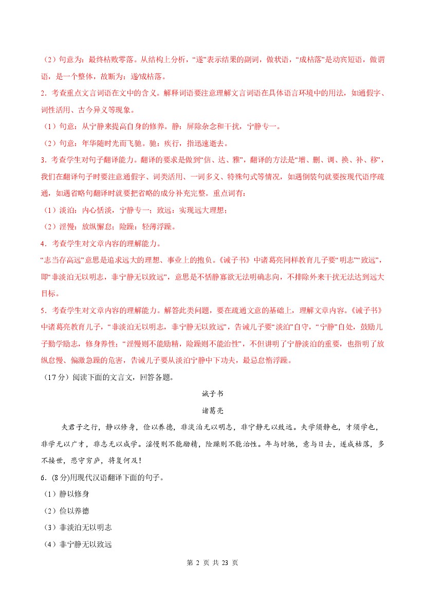 首页 > 全部 > 课时练习 > 25秋七年级上册语文同步练习第16课 《诫子书》(分层作业)(解析版)