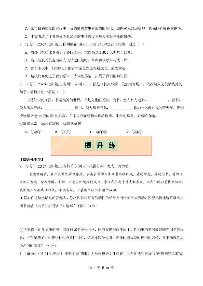 首页 > 全部 > 课时练习 > 25秋七年级上册语文同步练习第18课《我的白鸽》(分层作业)(原卷版)