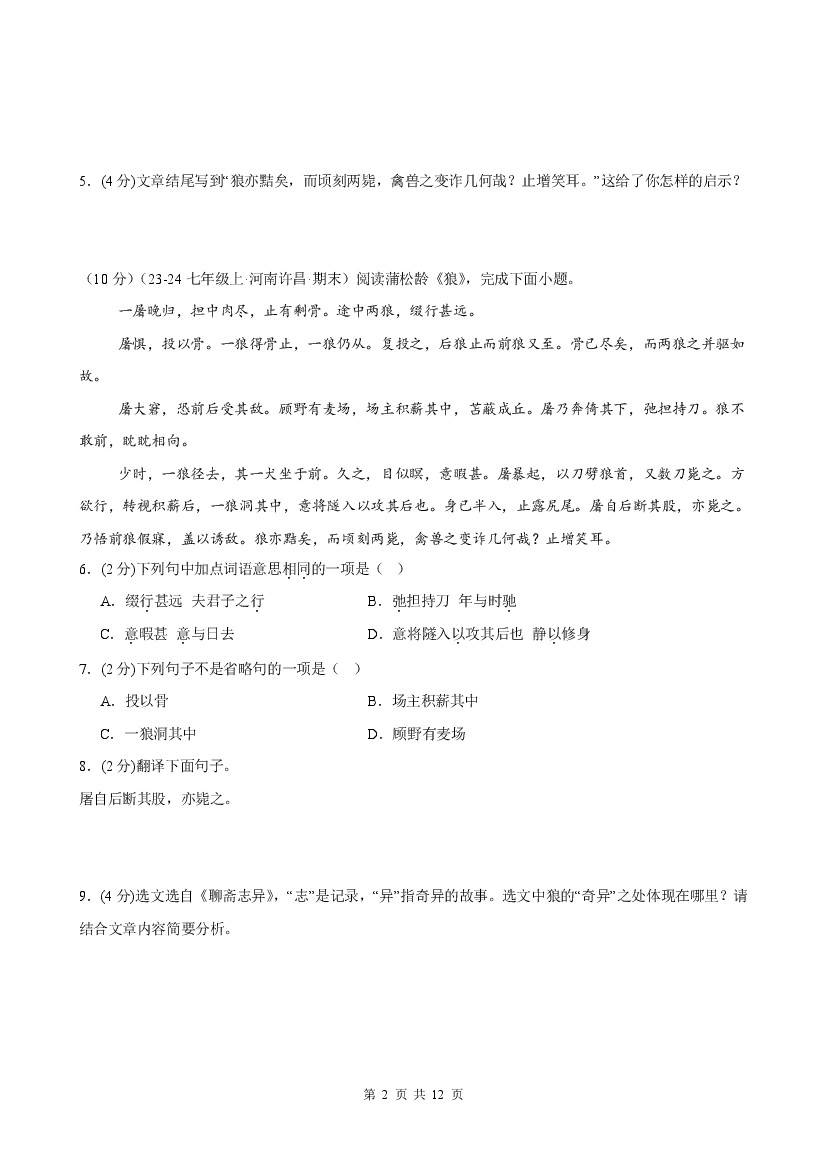 首页 > 全部 > 课时练习 > 25秋七年级上册语文同步练习第20课 《狼》(分层作业)(原卷版)