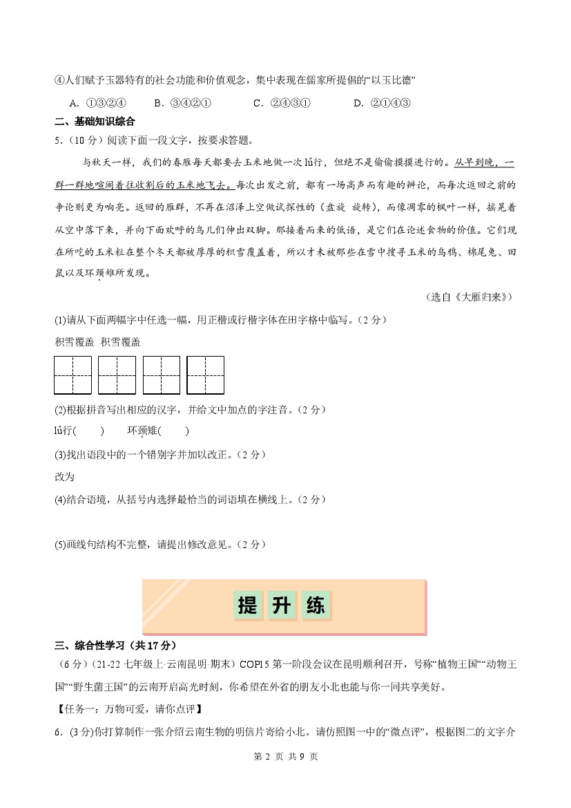 首页 > 全部 > 课时练习 > 25秋七年级上册语文同步练习第19课 《大雁归来》(分层作业)(原卷版)