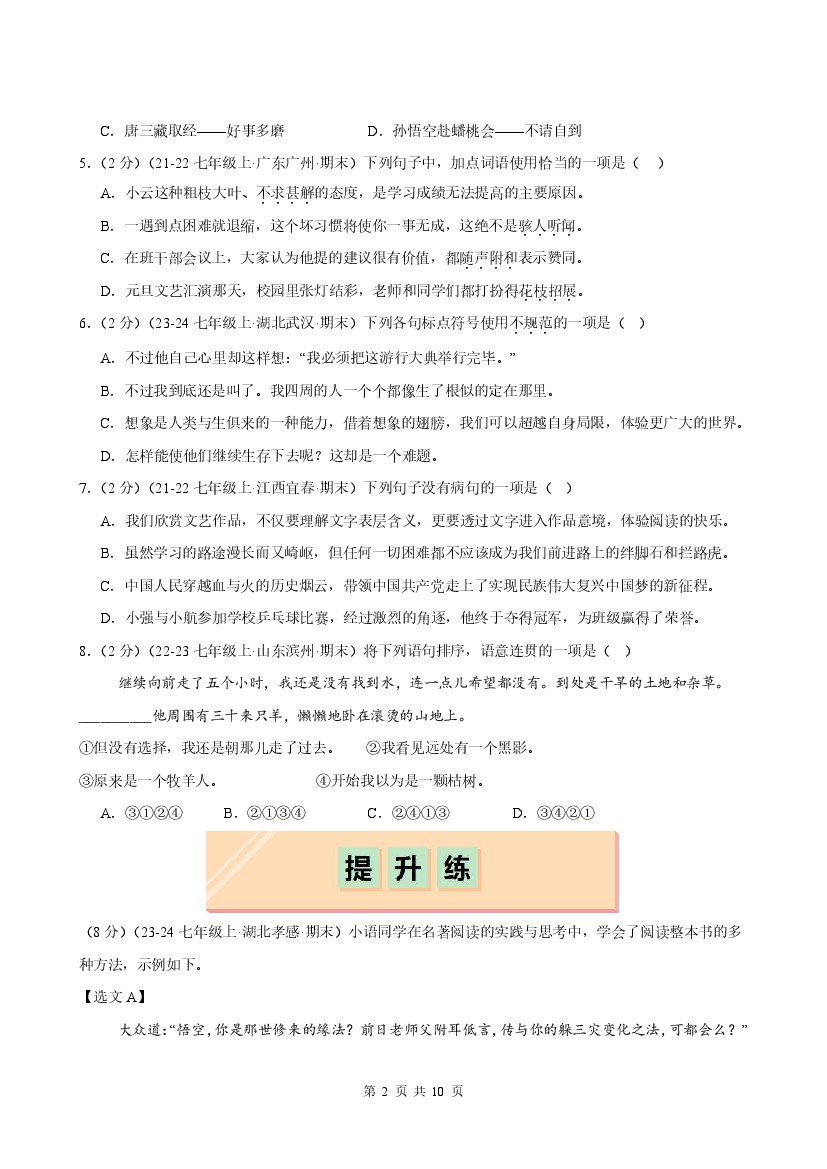 首页 > 全部 > 课时练习 > 25秋七年级上册语文同步练习第21课 《小圣施威降大圣》(分层作业)(原卷版)