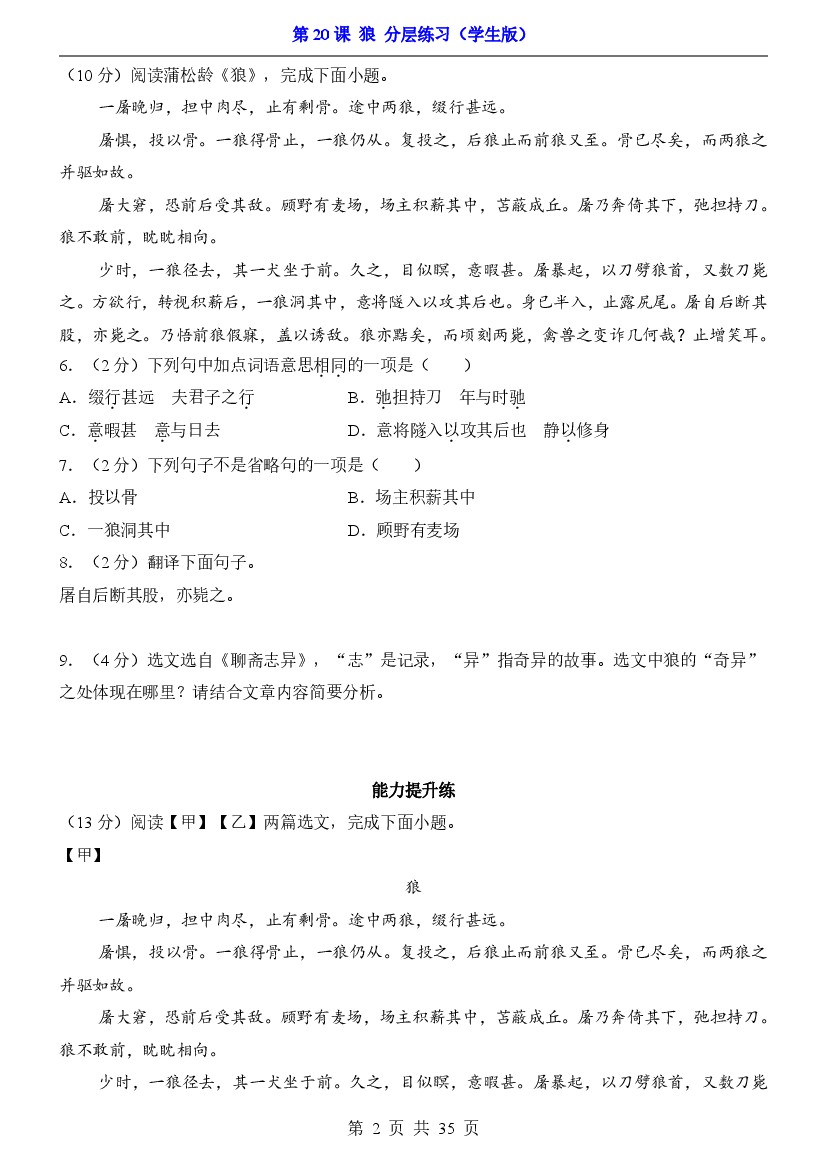 首页 > 全部 > 课时练习 > 25年七上第20课 狼(分层练习)