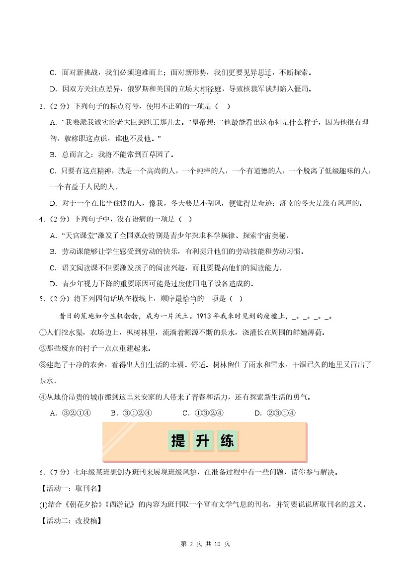 首页 > 全部 > 课时练习 > 25年秋七年级上册语文同步练习第23课 《女娲造人》(分层作业)(原卷版)
