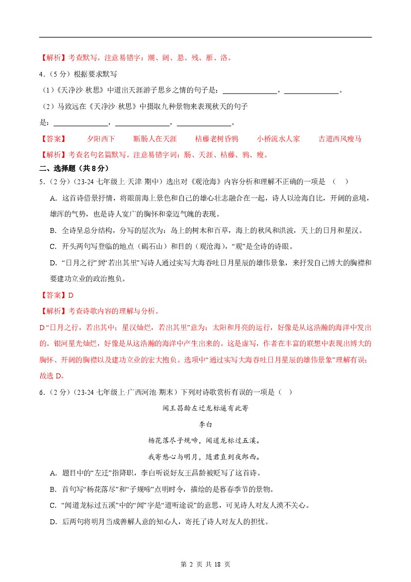首页 > 全部 > 课时练习 > 25秋七年级上册语文同步练习第4课 《古代诗歌四首》(分层作业)(解析版)