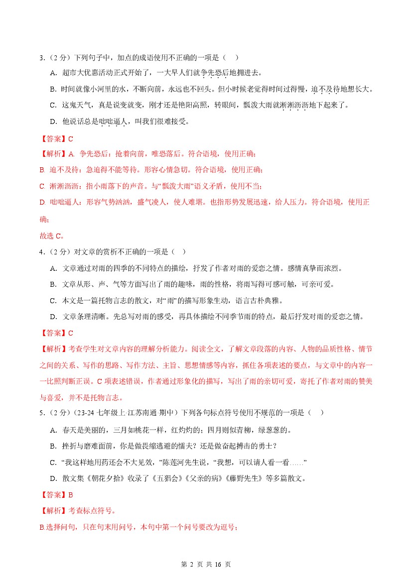 首页 > 全部 > 课时练习 > 25秋七年级上册语文同步练习第3课 《雨的四季》(分层作业)(解析版)