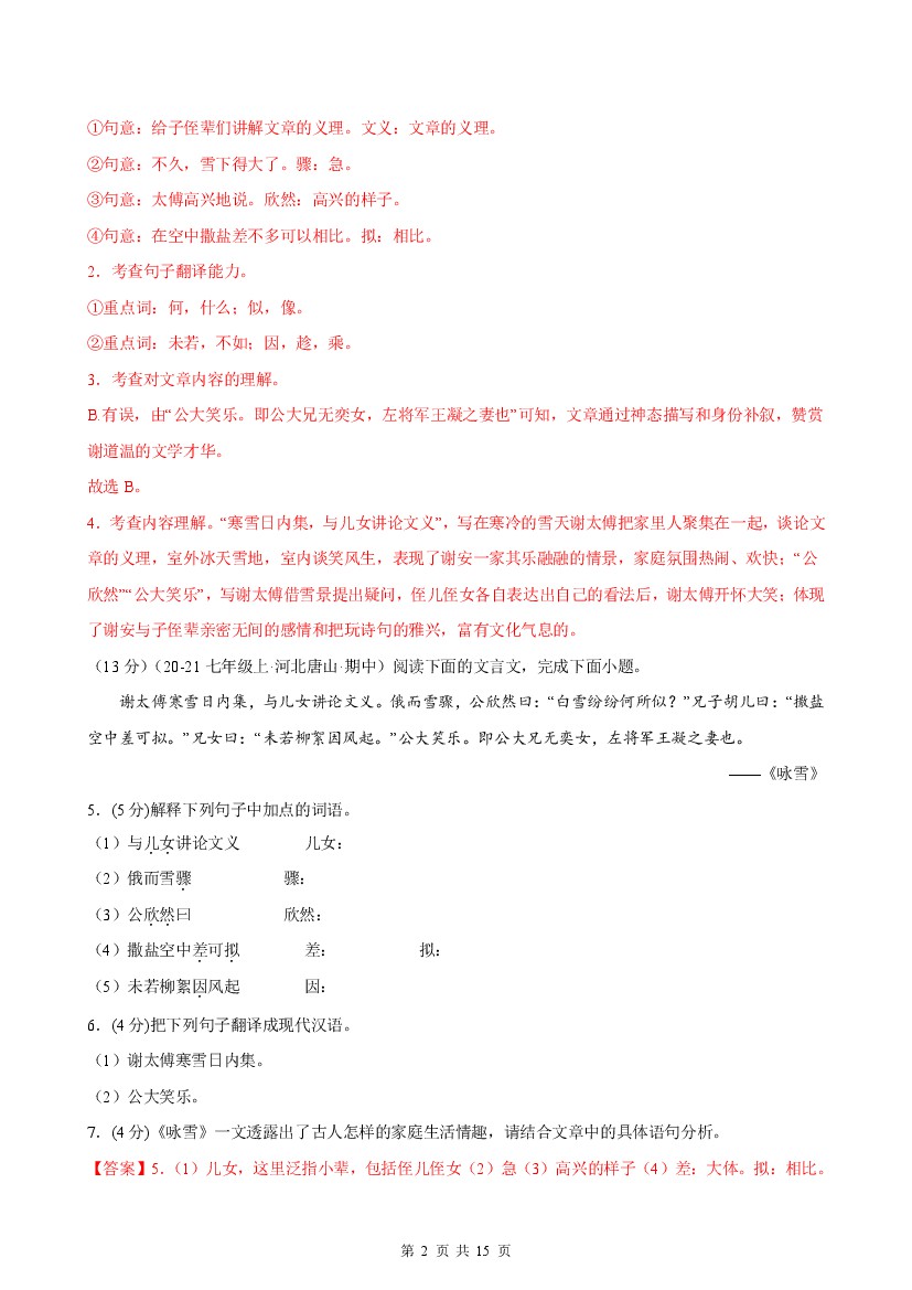 首页 > 全部 > 课时练习 > 25秋七年级上册语文同步练习第8课 《咏雪》(分层作业)(解析版)