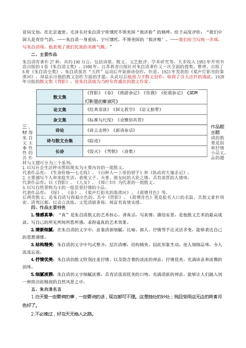 初中 第01讲 朱自清散文-【暑假自学课】新七年级语文暑假提升精品讲义(统编版) (原卷版+解析版)