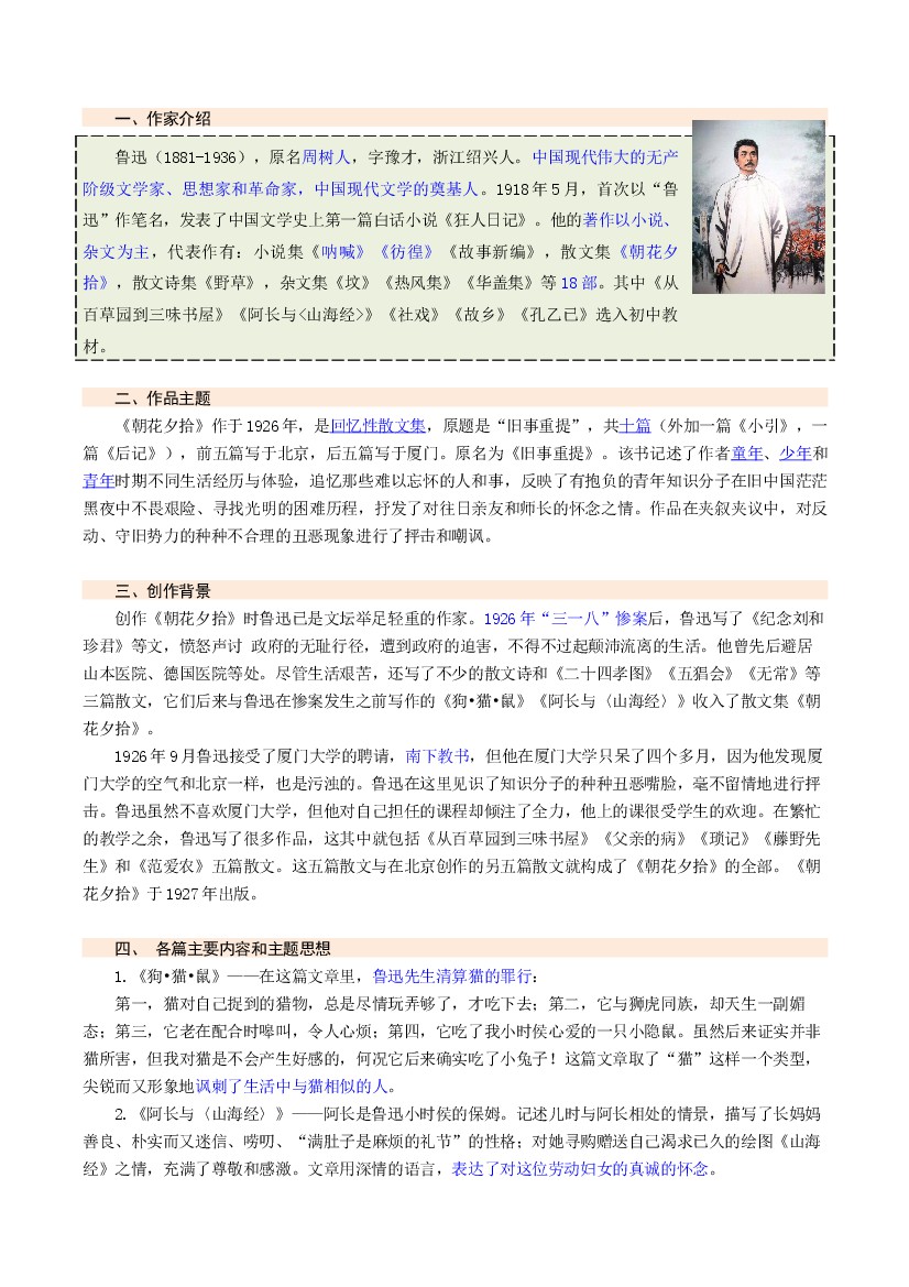 首页 > 全部 > 假期练习 > 第14讲 整本书阅读之《朝花夕拾》-【暑假自学课】新七年级语文暑假提升精品讲义(统编版)(原卷版+解析版)