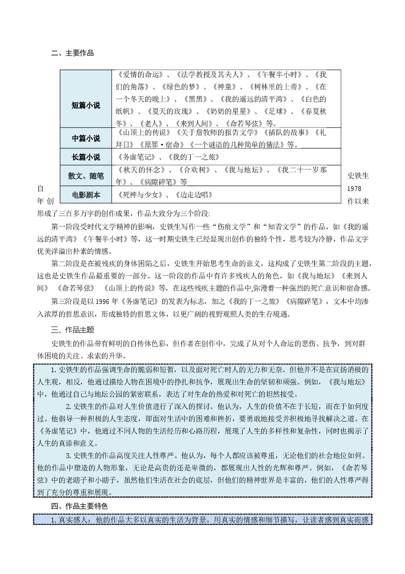 初中 第03讲 史铁生散文-【暑假自学课】新七年级语文暑假提升精品讲义(统编版)(原卷版+解析版)