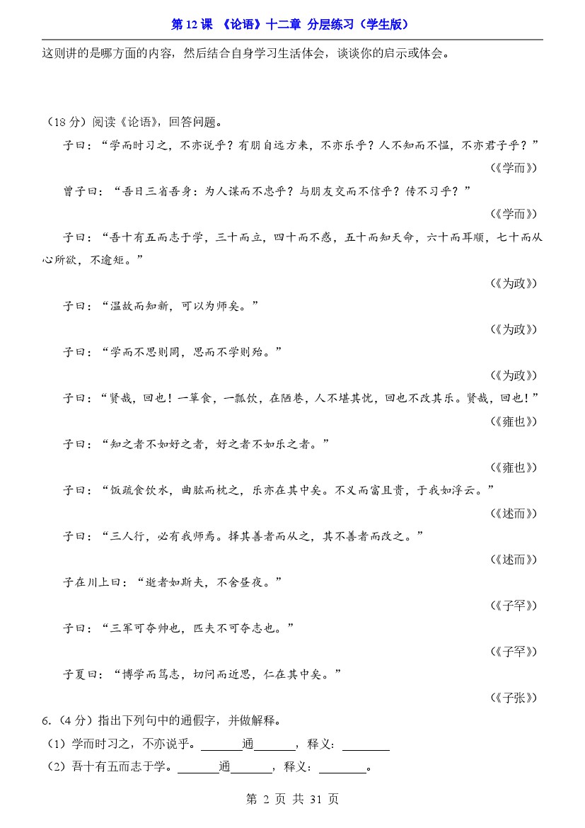 首页 > 全部 > 课时练习 > 25年七上第12课 论语十二章(分层练习)