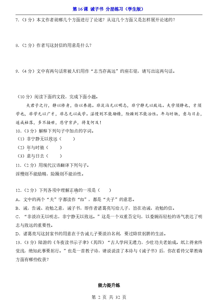 首页 > 全部 > 课时练习 > 25年七上第16课 诫子书(分层练习)
