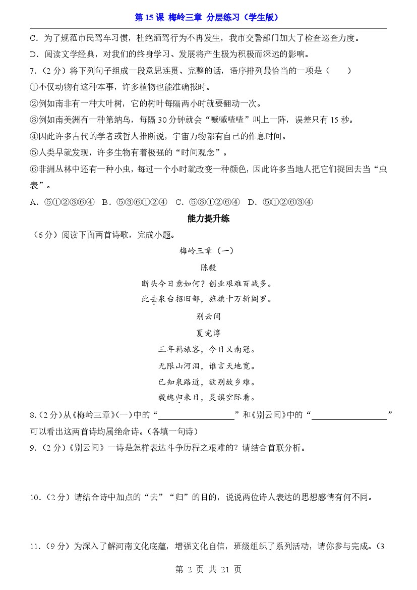 首页 > 全部 > 课时练习 > 25年七上第15课 梅岭三章(分层练习)