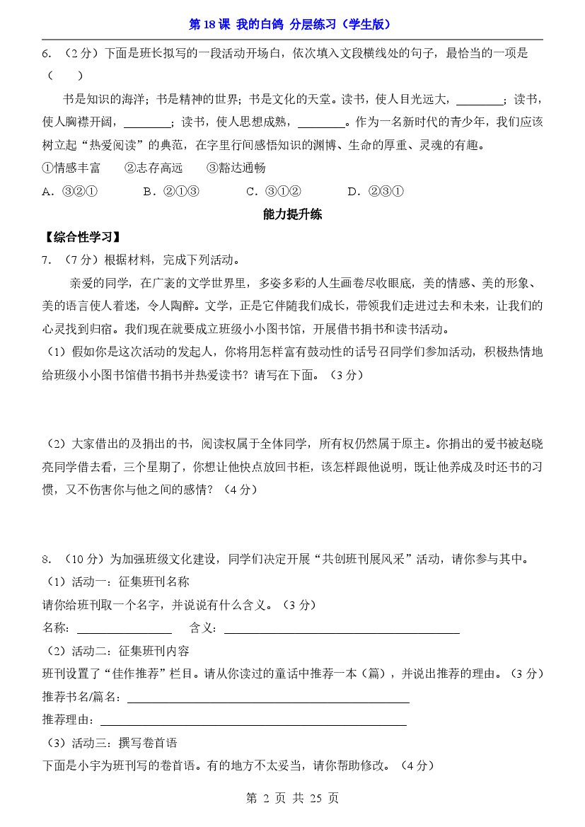 首页 > 全部 > 课时练习 > 25年七上第18课 我的白鸽(分层练习)