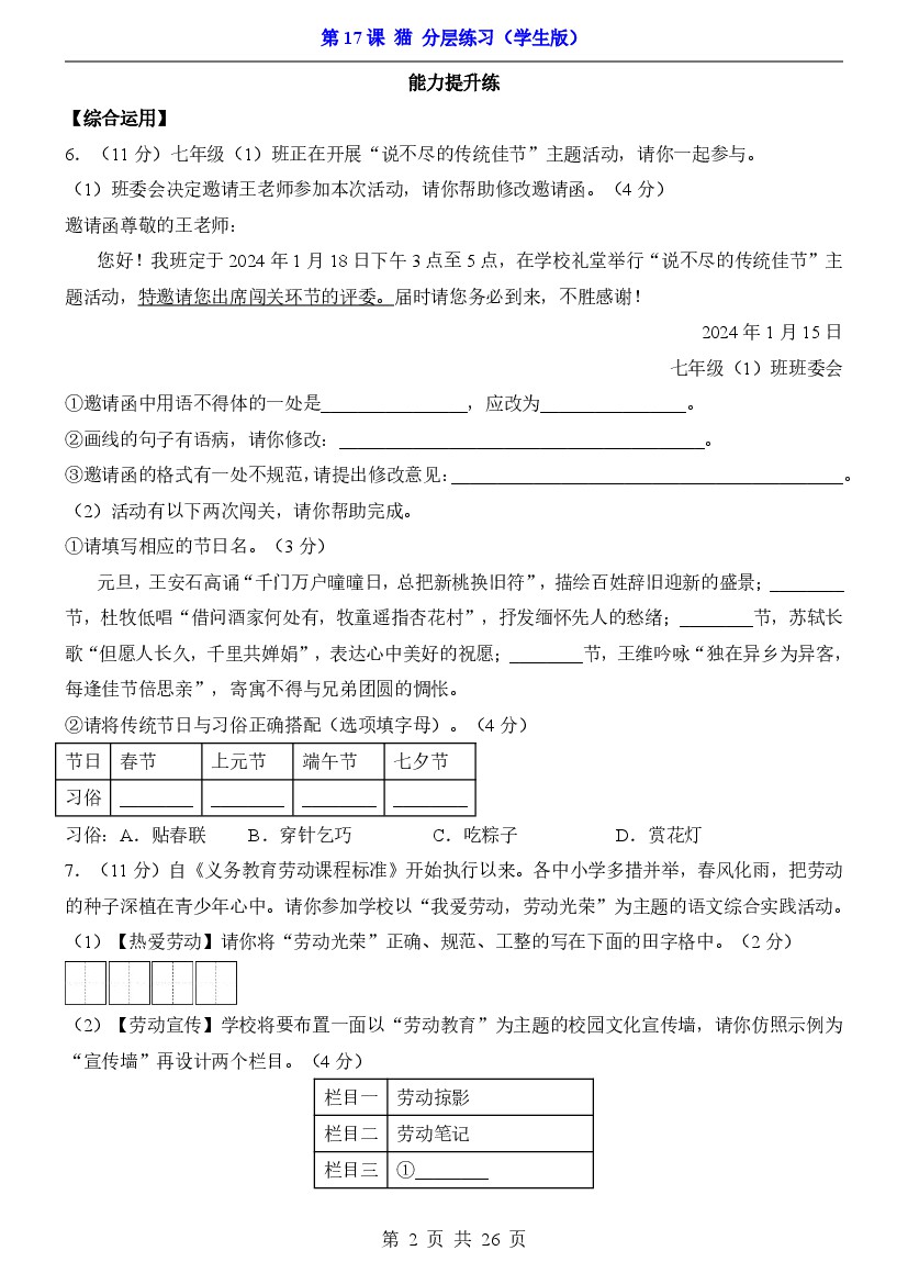 首页 > 全部 > 课时练习 > 25年七上第17课 猫(分层练习)