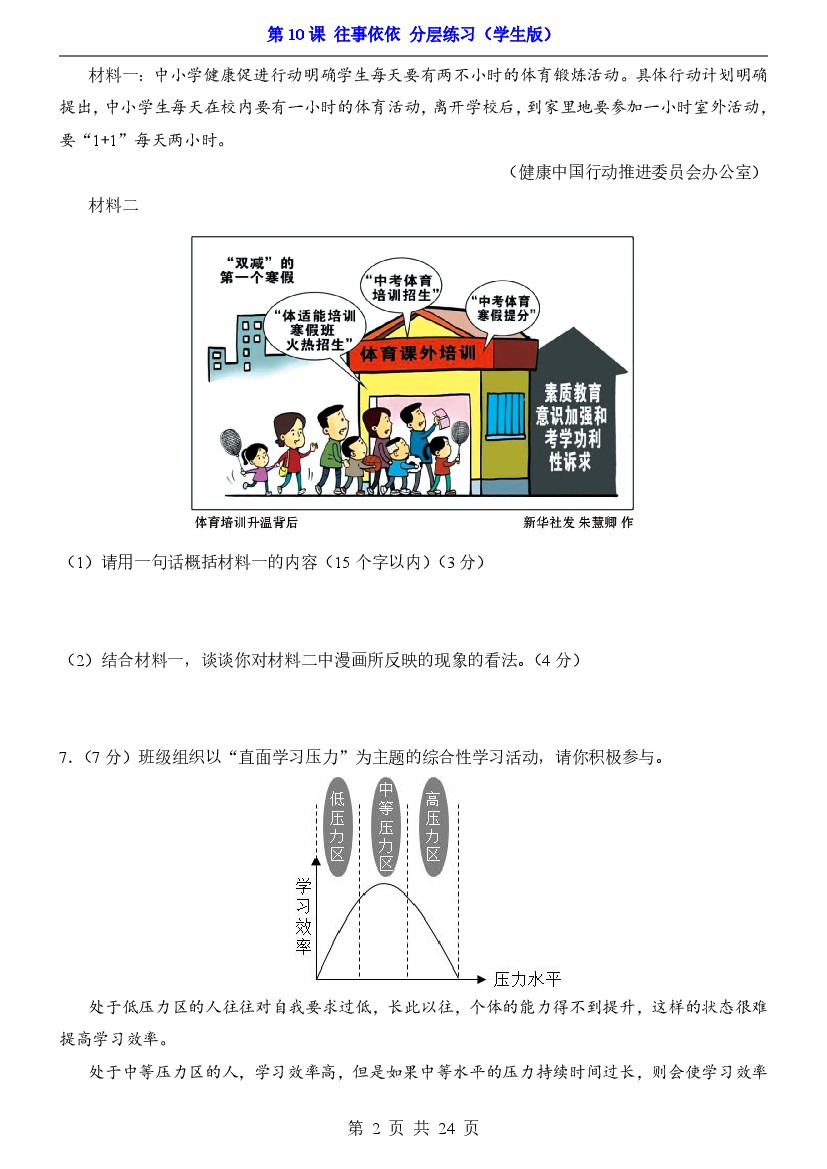 初中 25年七上第10课 往事依依(分层练习)