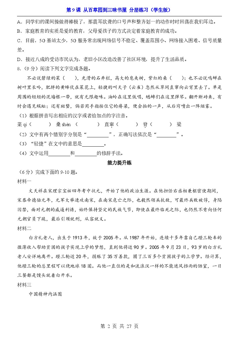 首页 > 全部 > 课时练习 > 25年七上第9课 从百草园到三味书屋(分层练习)