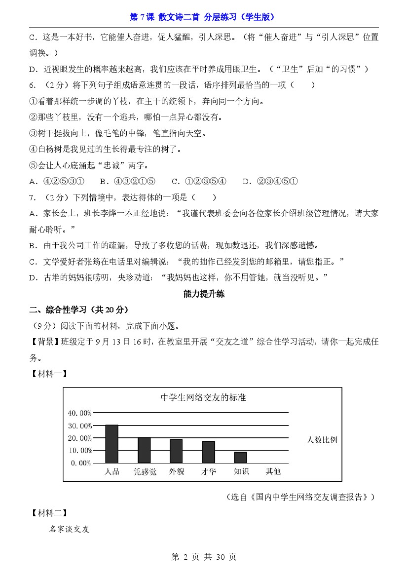 首页 > 全部 > 课时练习 > 25年七上第7课 散文诗二首(分层练习)