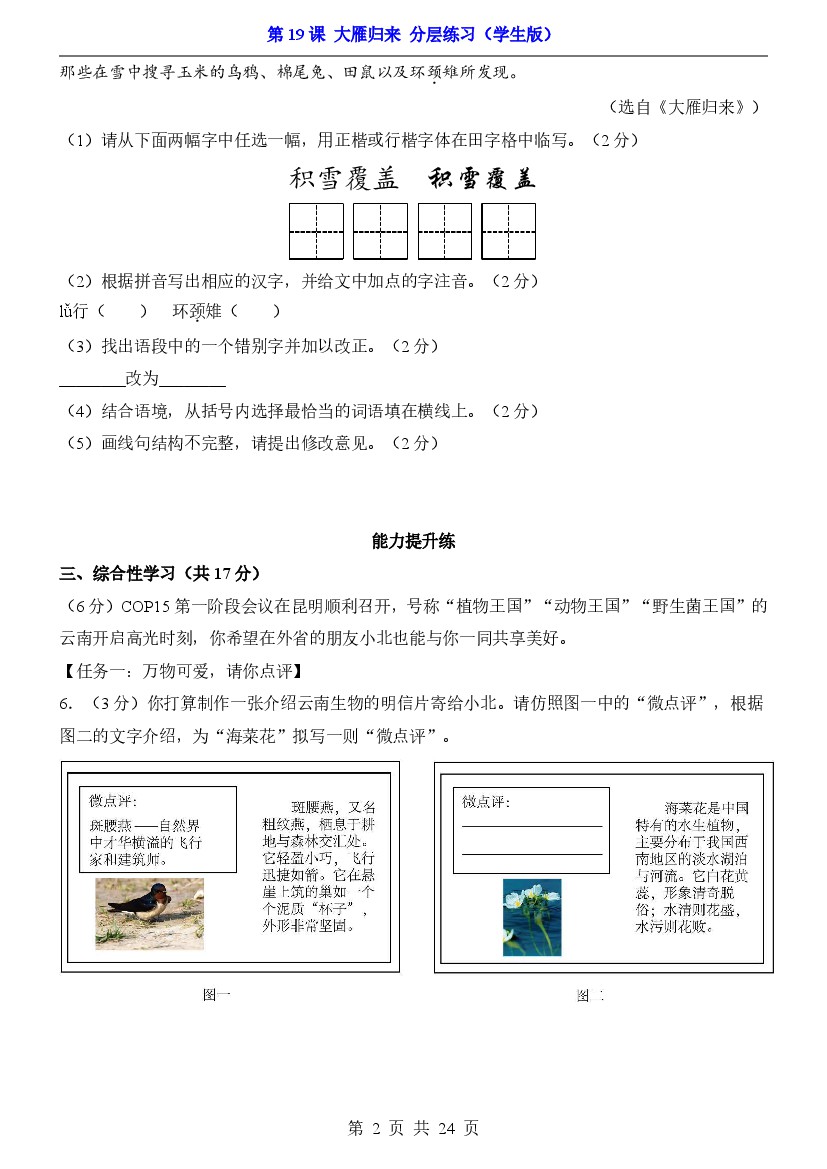 首页 > 全部 > 课时练习 > 25年七上第19课 大雁归来(分层练习)