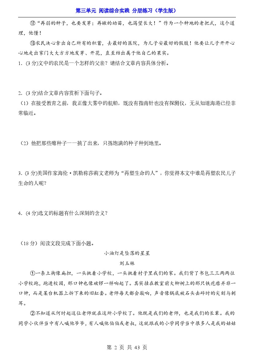首页 > 全部 > 单元测试 > 七上第三单元 阅读综合实践(分层练习)