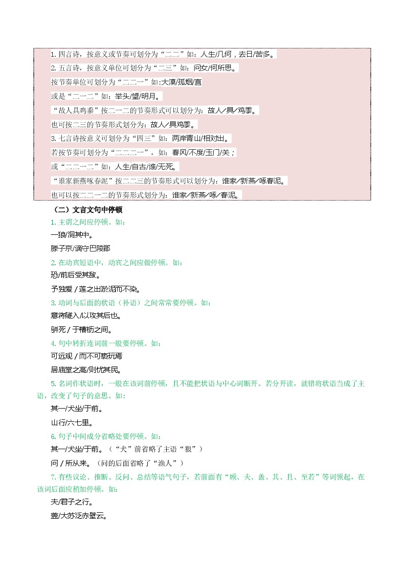 初中 第10讲 古诗文朗读停顿与断句-【暑假自学课】新七年级语文暑假提升精品讲义(统编版)(原卷版+解析版)