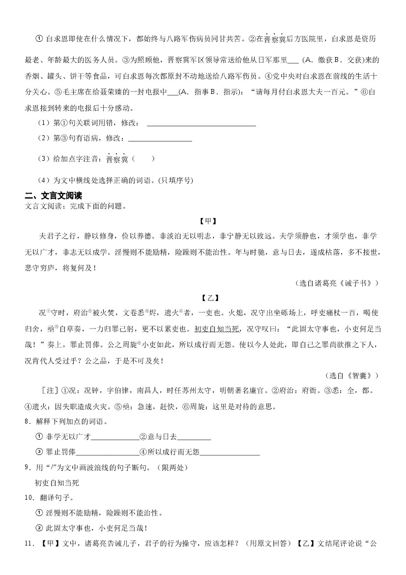 首页 > 全部 > 单元测试 > 2025-2026学年统编版(2024)七年级语文第一学期第四单元(单元过关练习)(含答案)