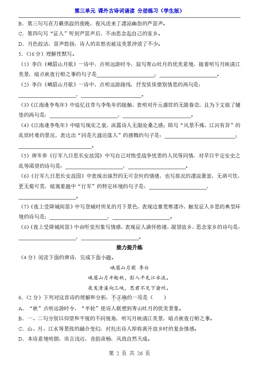 首页 > 全部 > 单元测试 > 七上第三单元 课外古诗词诵读(分层练习)