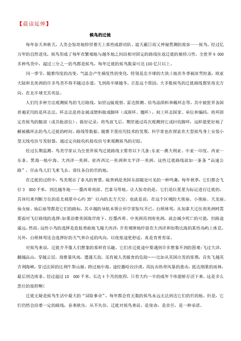 首页 > 全部 > 晨读晚默 > 【七上语文】第19课 《大雁归来》--2025版同步练习晨读晚默((解析版))