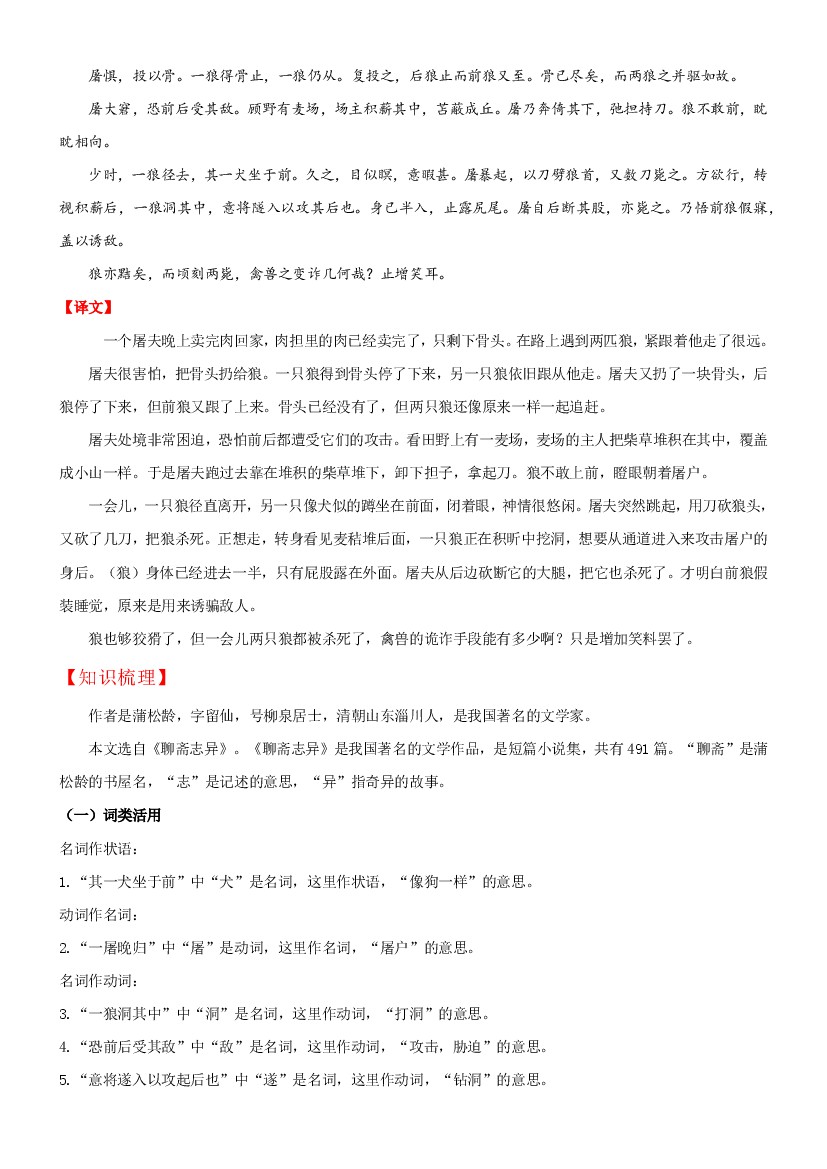 【七上语文】第20课《狼》二则--2025版同步练习晨读晚默((解析版))