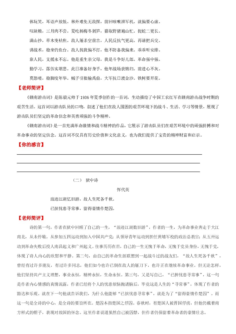 初中 【七上语文】第15课 《梅岭三章》--2025版同步练习晨读晚默((解析版))