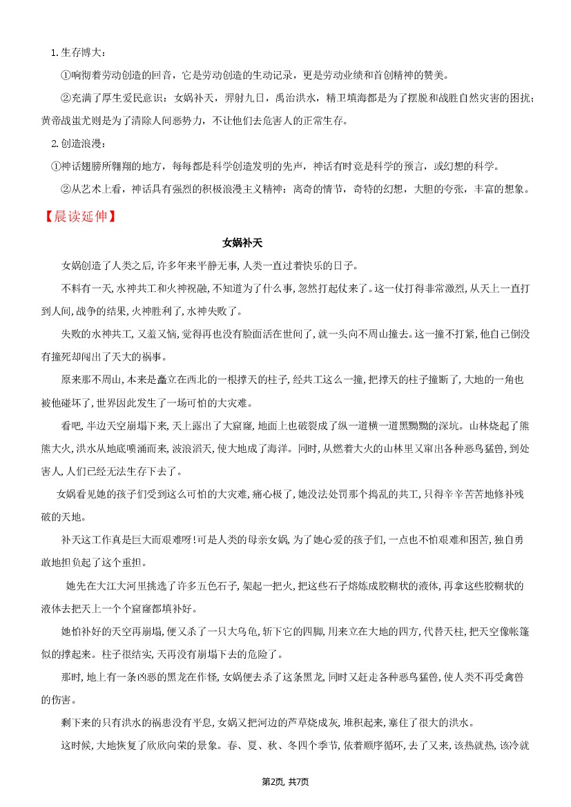 初中 【七上语文】第23课 《女娲造人》--2025版同步练习晨读晚默(原卷版)