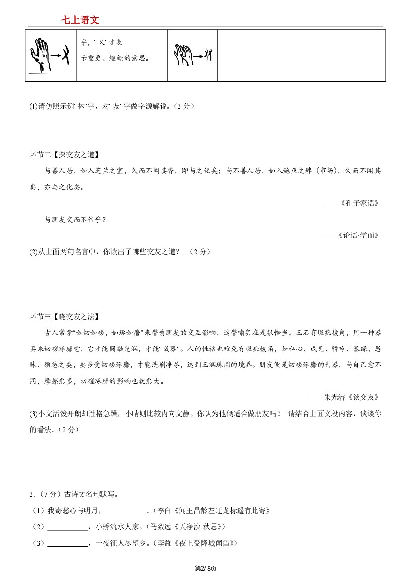 首页 > 全部 > 单元测试 > 【七上语文】第三单元【2025版单元检测】(A卷•知识通关练)(原卷版)