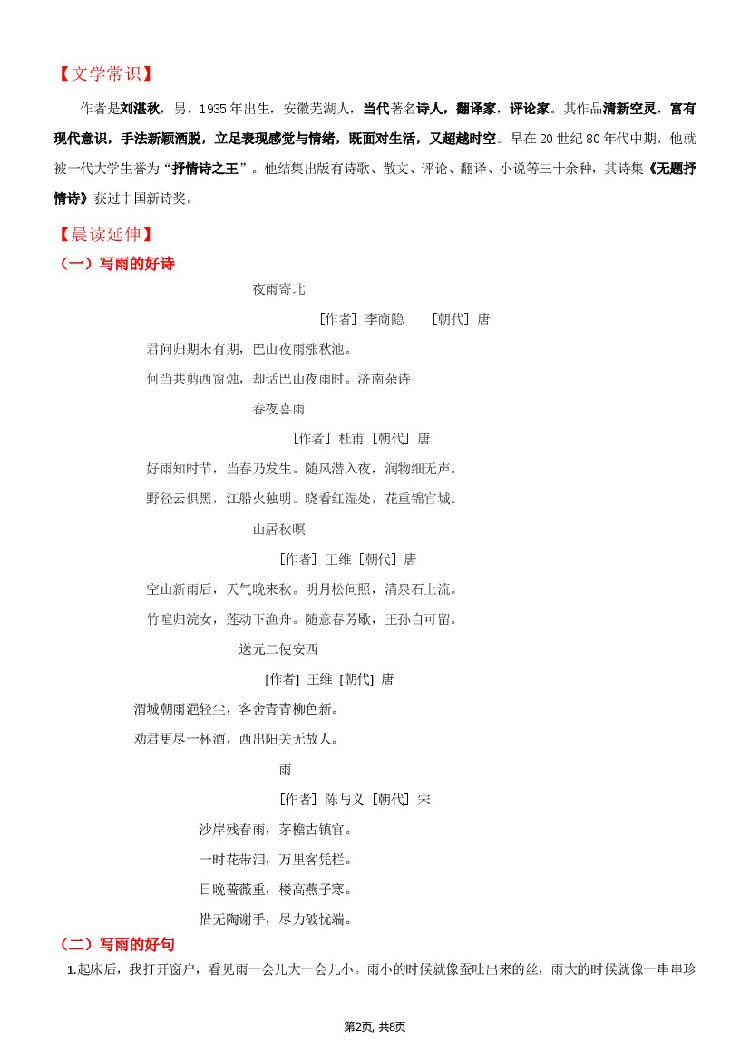 首页 > 全部 > 晨读晚默 > 【七上语文】第3课《雨的四季》--2025版同步练习晨读晚默(原卷版)