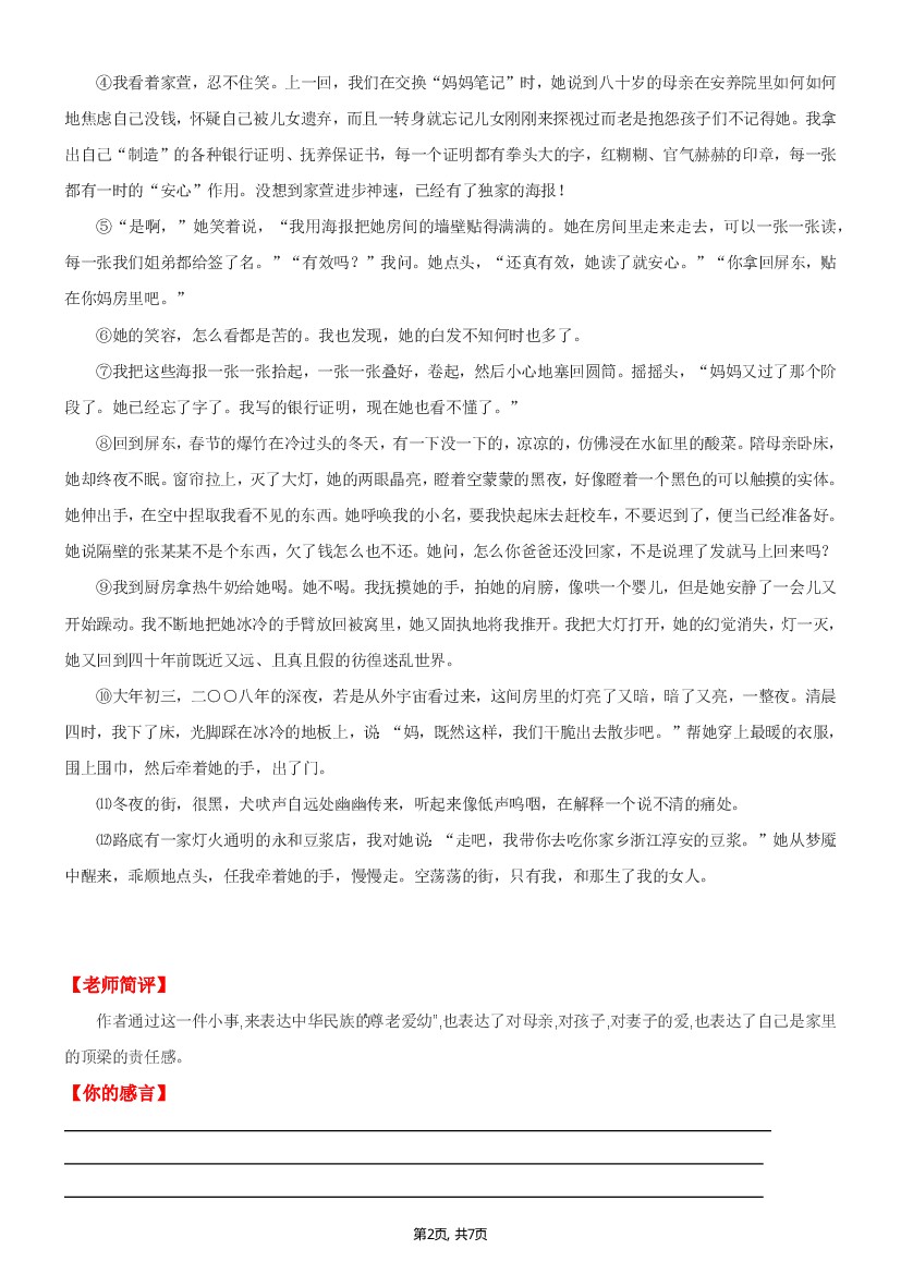 初中 【七上语文】第6课《散步》--2025版同步练习晨读晚默(原卷版)