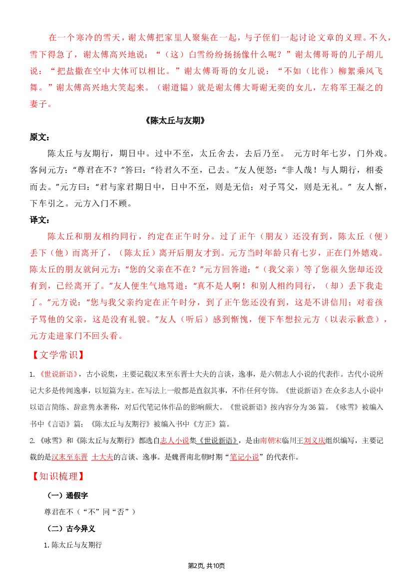 首页 > 全部 > 晨读晚默 > 【七上语文】第8课《世说新语》二则--2025版同步练习晨读晚默(原卷版)