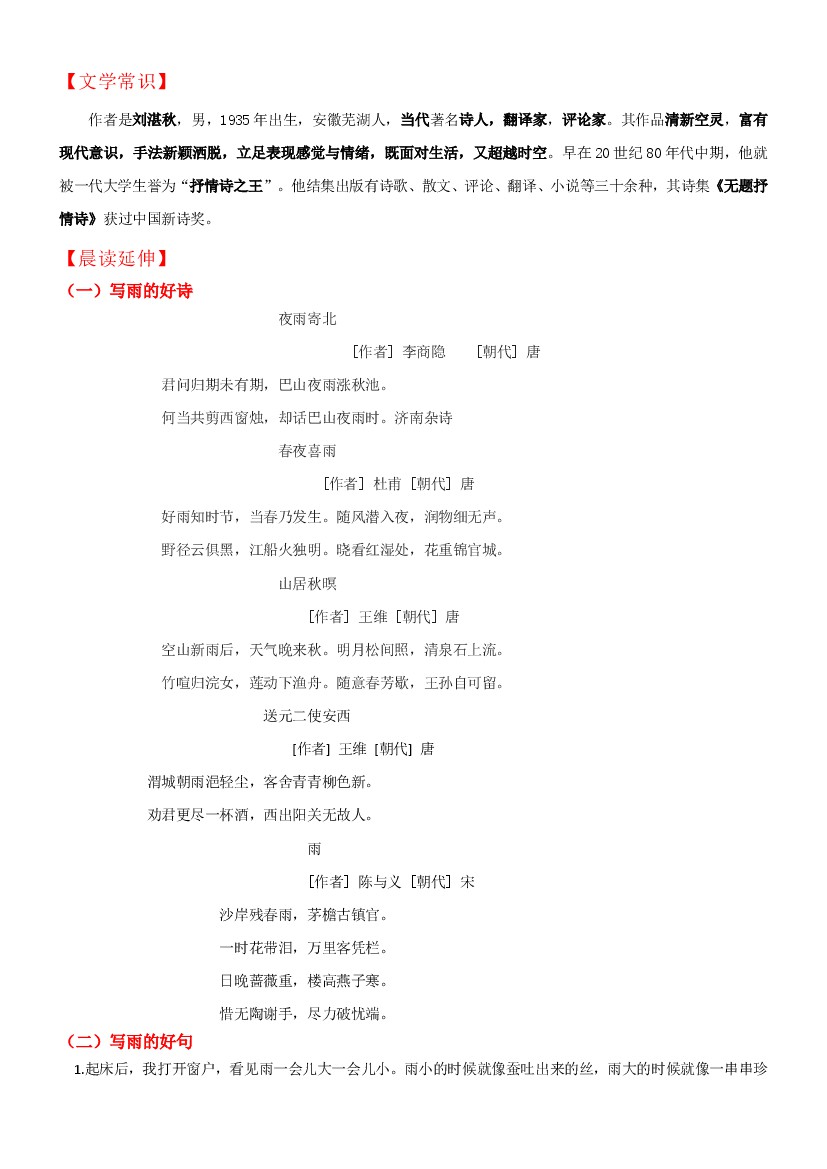 首页 > 全部 > 晨读晚默 > 【七上语文】第3课《雨的四季》--2025版同步练习晨读晚默((解析版))