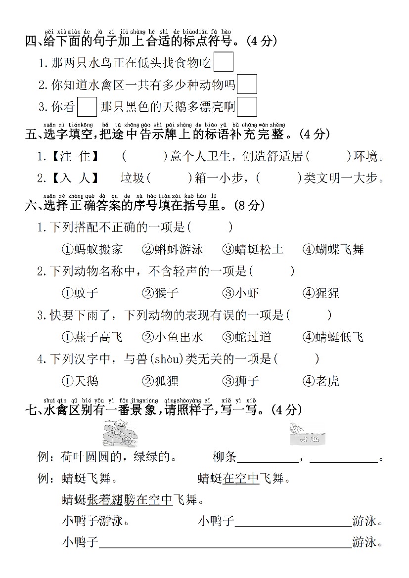 小学 一年级下册语文期末拔尖检测卷3