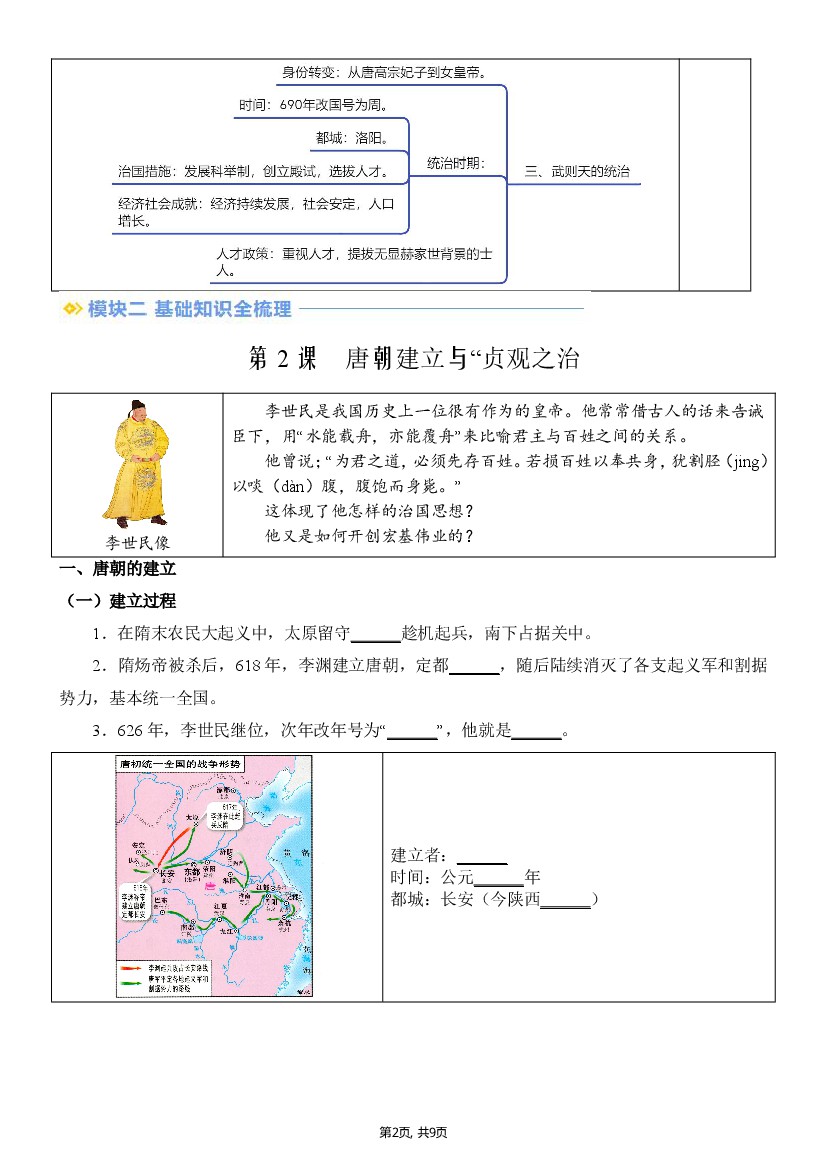初中 【七下历史】新七下第2课唐朝建立与“贞观之治“(原卷版)