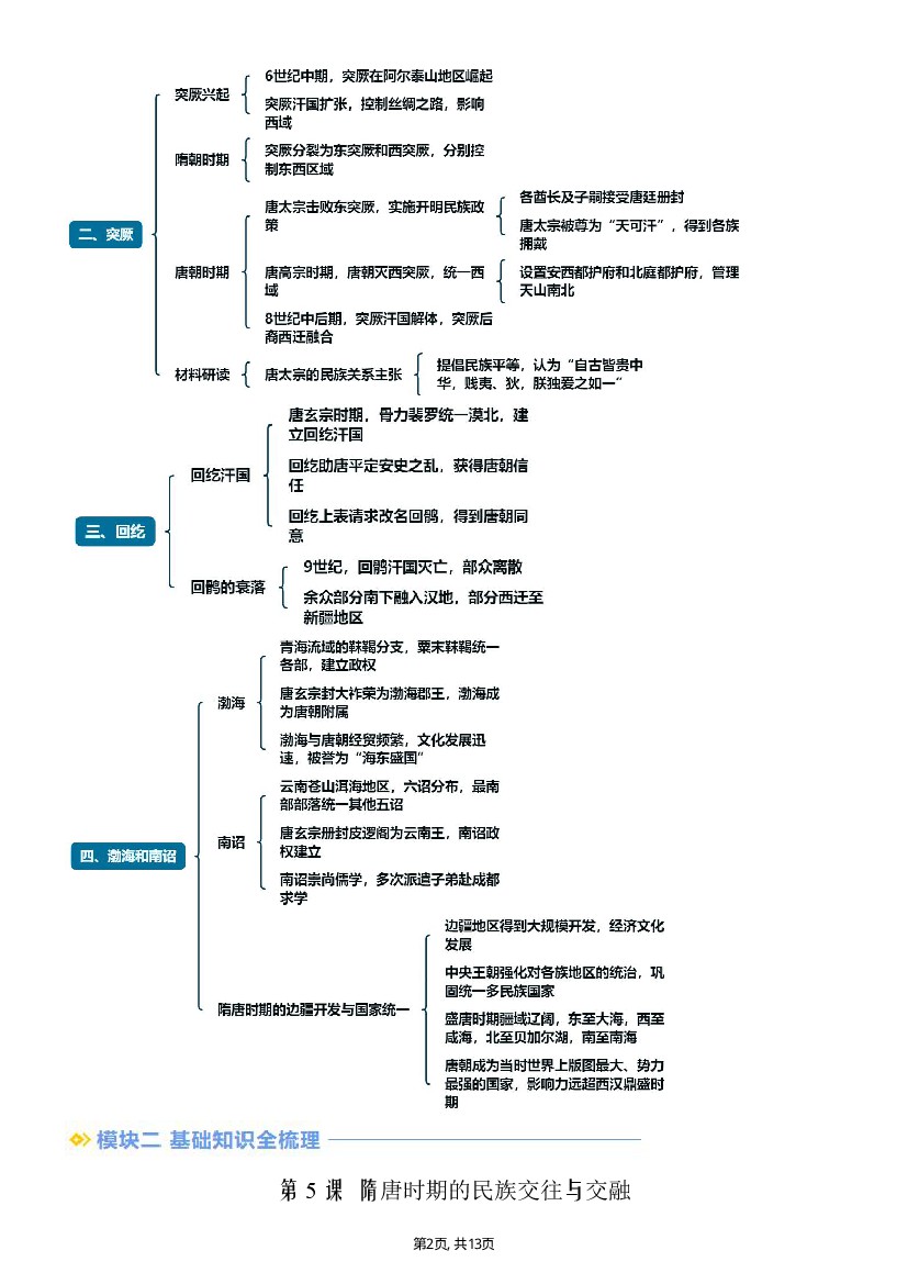 初中 【七下历史】新七下第5课隋唐时期的民族交往与交融(解析版)