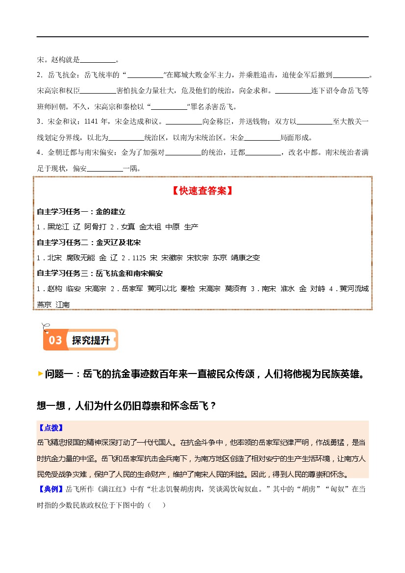 首页 > 全部 > 课时练习 > 2025年七下历史一课一练第10课金与南宋对峙(解析版)-七年级历史下册同步学与练(统编版)
